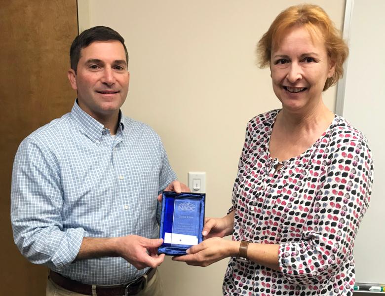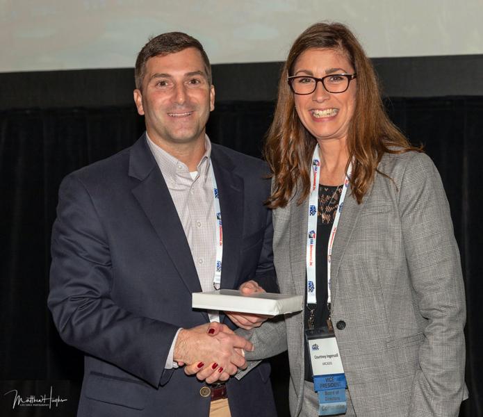 “For 24 years, Connie Birner has supported NAOC. A fun fact about Connie. Connie is the first woman to appear on the leadership team. From 1998 through 2000, she served as Chairman of the Membership Committee. Following that role, she continued to be our historian and knowledgebase. Believe me when I say - Very few people have the incredible knowledge of this Association like Connie Birner. In 2019, she continued to be my right hand. I interfaced with her several times a month, if not weekly. Sometimes, she received several emails a day from me. Her response “no problem,” “I am on it,” always a joy to work with. She leads the task on managing our membership database. She works closely with me, our Treasurer, and the BOD. She is the first person our new members interface with. Her warmth and graciousness are contagious. Unfortunately, she could not be here tonight. But I feel immense gratitude for her. I wanted to say thank you to Ms. Connie Birner of USA Environmental. I have asked Mr. Brian Skubin to accept this award on her behalf.”